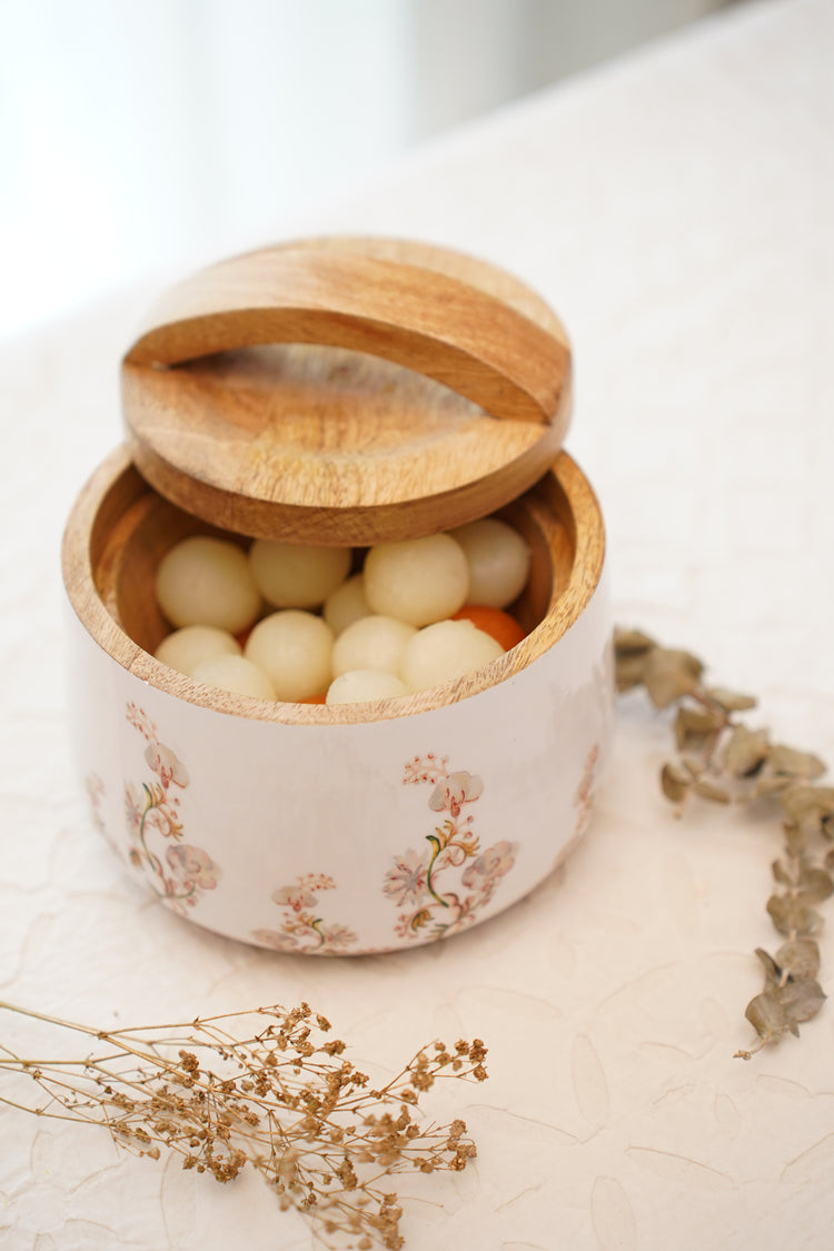 A jar with a twist - bowl-shaped, charmingly painted, and delightfully handy for everyday use. It is perfect for servings on the table