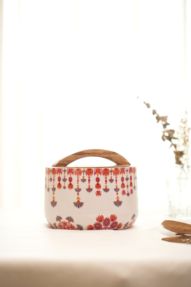 A jar with a twist - bowl-shaped, charmingly painted, and delightfully handy for everyday use. It is perfect for servings on the table