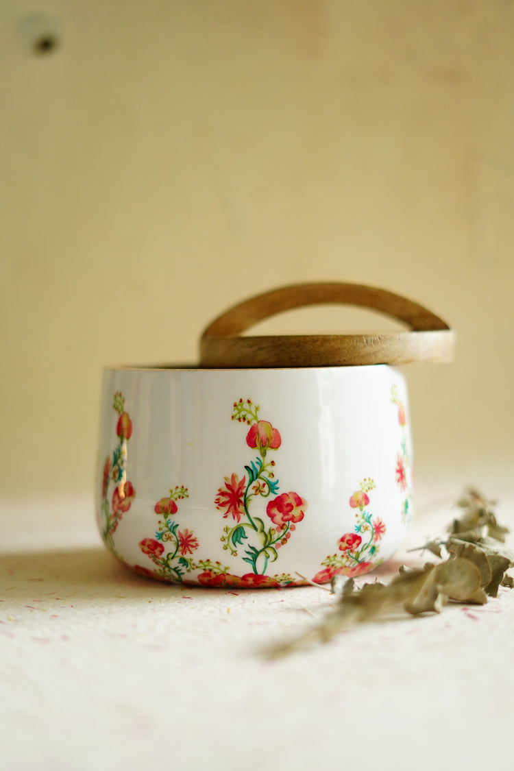 A jar with a twist - bowl-shaped, charmingly painted, and delightfully handy for everyday use. It is perfect for servings on the table