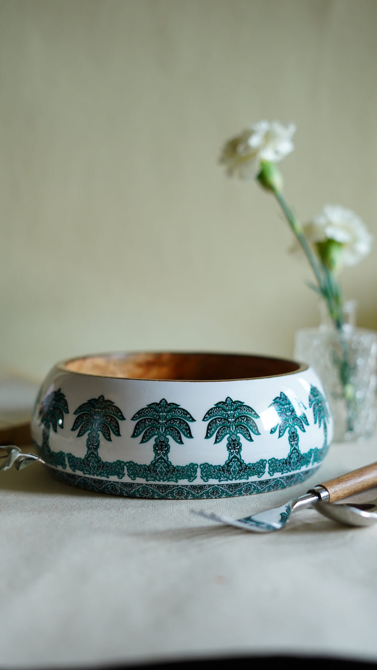 Palm World Wooden Bowl- Dark Green