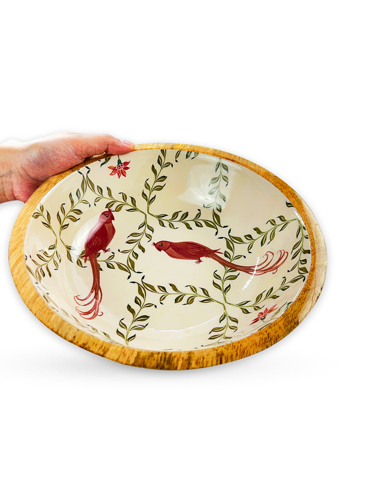 Anar Ki Kali Wooden Serving Bowl - Maroon cross pattern Jaal