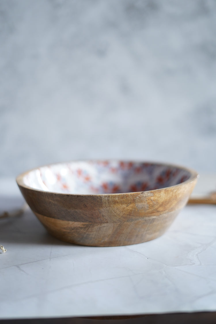 Rangeen Rangoli Wooden Serving Bowls - Blue orange