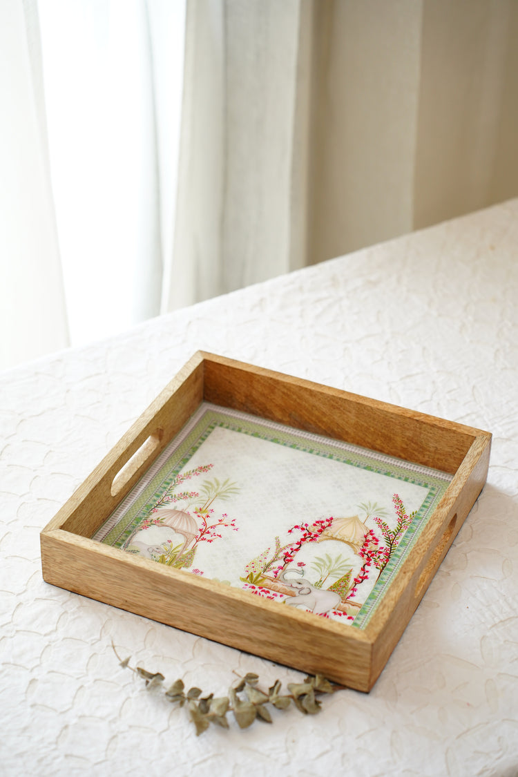 This serving tray is perfect to serve a family of 4-5 people. This serving tray is handcrafted in designs which remind us of our heritage.